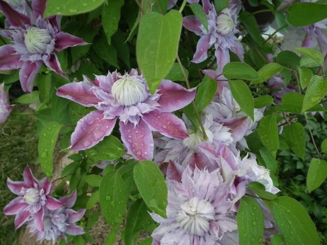 | Oh Julie, dentists and doctors must have such a hard time! My sister bit her dentist as I recall. His name was Doctor Root!You asked about DS. He's in Jamaica doing work there for a little while. Then off to visit a friend in a special area of Madagascar! He should get back to Haiti on and off in the times to come. As for DD, they are off camping. Struggles with DSIL's ex are worse than ever. She's so miserable. Wish she'd figure out how to create some joy in her life. Saturday we attended a very nice plant sale. I picked up a few small things like Angelica gigas, some 2 year old Redbud trees, a dark Jacob's Ladder plant, and a few other things. DH even enjoyed the event as there was nice chat and iced tea served as well. Today we celebrated Queen Victoria's birthday here in Canada. I weeded and watered, read a book, made meals and waited for the promised thunderstorm. But -no rain at all so far. We also needed to repair several holes in the garden fence where huge rabbits were getting in. Next week we need to repair a board on our bridge. There always seems to be one that is weak. Then a board fell off our barn in a wind storm a while back and I think we need to replace several. Always something! The birds make such amazing sounds these days! Clematis Dawn |