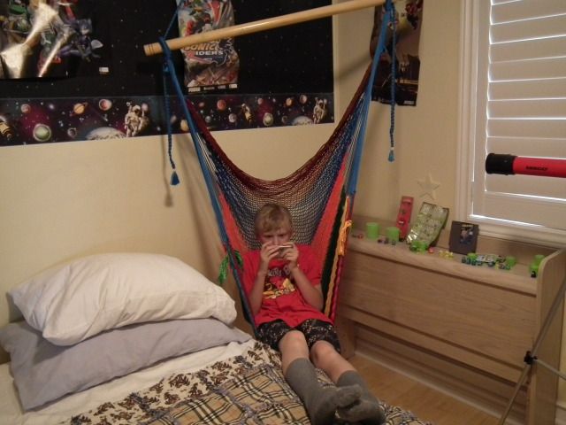 And every boy needs an aunt to send a hammock chair from Mexico to help with hot day relaxation! Cheers! |