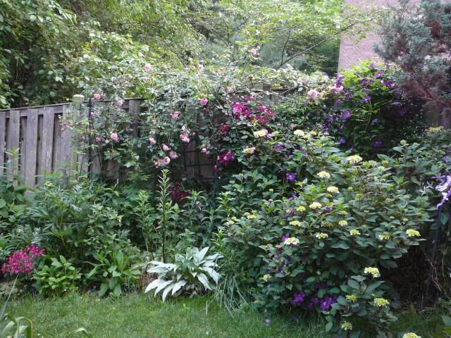And here's a close up of all I did last year (almost none of this was there!)...and the schizophragma "moonlight" is actually climbing the tree!
