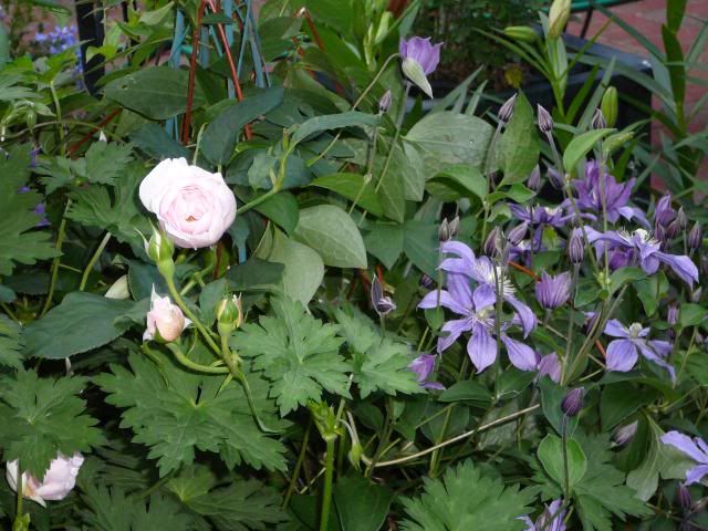 | Good morning all, Well I had a very successful plant shopping expedition yesterday with my friend Mary and I think I’ve got everything I need to finish up my pots. I found the cutest abutilon standard with lovely lemon yellow flowers that I couldn’t resist buying. Like I need another abutilon but I don’t have that variety. LOL. ~~ I’m planning on a heavy duty potting up day today and major cleanup to get the patio ready for company this weekend. Of course the weather is not going to cooperate and the temps are predicted to go back up into the 90s. Grrrr…. Doug and I are going to set up one of our pop up tents in addition to the market umbrella so everyone sitting on the patio can be in the shade. ~~ Many thanks all for the kind comments about the pics and combos! I appreciate the positive feedback Saucy, great news on getting help with GG. I planted a new Astilboides this year too. As you said it looks pretty puny and it’s hard to believe it will become the behemoth we know it will. I lined the planting area with plastic so it has adequate moisture because the trees suck everything dry back there. ~~~ Big hugs to you for the difficulties with Jake. Heather was exactly like that and I pulled my hair out to baldness many times (well not really but it seemed like it, LOL) and feared she’d never grow up. He’ll figure it out eventually and figure it out faster by making him deal with the consequences. I wonder, can you have him deal with all the paperwork to submit for a new birth certificate? Norma, I planted my dahlias beginning of last week and the one good thing this heat has done is gotten them a jump start on the season. ~~ That caladium in the hanger is a new one to me and I really love it. It’s called ‘Florida Sweetheart’. I found them at Loews. I almost didn’t buy it because the label said Blaze and I didn’t want red ones for that planter but realized that it had to be mislabeled because they come up the color they will be and won’t change from pink to red. Sure enough, I found a ‘Florida Sweetheart’ at the nursery yesterday so I now know the name of it. A really terrific plant. Bug, that Claire de Lune is absolutely fabulous!!!!! I’d make room for that beauty. How long do those flowers last for you and does it stay upright like that without staking? Woody, I absolutely love that photo, Makes my fingers itch to do a painting of it. A gorgeous and romantic combination. Cindy, how strange that those Ceres Asiatics didn’t come back double for you. I’ve not heard of that happening before. Would love to see some more photos of your clematis arches if you have the time. ~~ Hope you get some cooler weather for gardening over the weekend. OK I’ve got to run and start my pot-a-thon…. Have a great day! Pic for the day… This has been one of the most reliable and enduring combinations in the gardens here. The clematis opened up yesterday and I’m loving t hat behind all the violets of the salvia and allium. Saucy, great news on getting help with GG. I planted a new Astilboides this year too. As you said it looks pretty puny and it’s hard to believe it will become the behemoth we know it will. I lined the planting area with plastic so it has adequate moisture because the trees suck everything dry back there. ~~~ Big hugs to you for the difficulties with Jake. Heather was exactly like that and I pulled my hair out to baldness many times (well not really but it seemed like it, LOL) and feared she’d never grow up. He’ll figure it out eventually and figure it out faster by making him deal with the consequences. I wonder, can you have him deal with all the paperwork to submit for a new birth certificate? Norma, I planted my dahlias beginning of last week and the one good thing this heat has done is gotten them a jump start on the season. ~~ That caladium in the hanger is a new one to me and I really love it. It’s called ‘Florida Sweetheart’. I found them at Loews. I almost didn’t buy it because the label said Blaze and I didn’t want red ones for that planter but realized that it had to be mislabeled because they come up the color they will be and won’t change from pink to red. Sure enough, I found a ‘Florida Sweetheart’ at the nursery yesterday so I now know the name of it. A really terrific plant. Bug, that Claire de Lune is absolutely fabulous!!!!! I’d make room for that beauty. How long do those flowers last for you and does it stay upright like that without staking? Woody, I absolutely love that photo, Makes my fingers itch to do a painting of it. A gorgeous and romantic combination. Cindy, how strange that those Ceres Asiatics didn’t come back double for you. I’ve not heard of that happening before. Would love to see some more photos of your clematis arches if you have the time. ~~ Hope you get some cooler weather for gardening over the weekend. OK I’ve got to run and start my pot-a-thon…. Have a great day! Pic for the day… This has been one of the most reliable and enduring combinations in the gardens here. The clematis opened up yesterday and I’m loving t hat behind all the violets of the salvia and allium. |