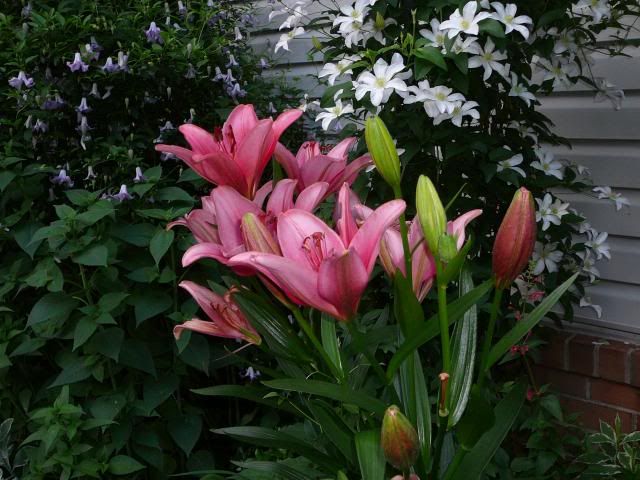 | Ooo Cindy the clems are fabu ! As far as the 'untamed' look goes, really it can be charming, romantic , evocative..like southern literature. It's very compelling to me. I especially appreciate seeing photos of places where it is not raining, lol. Your lilies are weeks ahead of mine ! Kathy in Napa |