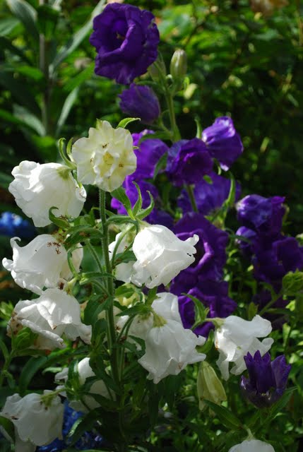 These are pics of my C. Cups and Saucers, planted with the Delphiniums ...ridiculously old-fashioned , requiring daily attention to staking, but I'm enjoying so much there will be a repeat performance next year.