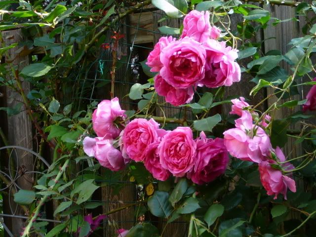 | My word what a busy Monday we have going on here ! Lots to view and comment on. I went and visited Marties thread over yonder and viewed 'bugs weekend-away pics. What a lovely spot ! I love the hostesses pottery collection on the white hutch. And the ever-popular food photos . And Martie what progress you've made at the Park ! Eden is that Henryii? Sure wish I still had a white Clematis , but mine was done in by snails and never replaced. Your garden is looking fabu-fabu. Looking forward to seeing what your DD has going on. PM, lol, that birch tree is over 20 years old and gets more and more cut off of it every year. It used to have two companions ( it's common to see them planted in threes) but they both croaked and were removed several years ago. More room for roses ! My new computer is actually a laptop that I can use anywhere in the house. I still have my desktop as well. This new rig is a Compaq, nothing fancy , but I got a great deal and it will be nice to have something I can take with me on trips.Hope you are feeling better. Nice photos -now that you explained your mobile camera thingy I don't have to be too awestruck about contortions you may have performed to get the correct angles . And Martie, at least your procedure will give you some time off work with family members having to wait on you, right ? I'll bet they are far less invasive that they were in the 'olden days' ? Is it a laser thing now ? Denise, I get the hummers all year here too. I think it's Annas we get all up and down the coast. Brenda, I wonder if the Idylls might need a photo of little baby pigs ? Perhaps we city slickers might have an overly romantic view of what the sight of 268 baby pigs might look like. Well, Deanne , what the hell, you only live once so you may as well have as many Coleus as you see fit -as long as Doug laughs instead of thinking about having you commited you'll be ok ! So the question is do you have more Coleus or does Brenda have more piglets ??? Marian, I love the color of that Peony ! The closest thing I have to it is my Frederic Mistral rose. Norma, I've taught a few seminars that included how to prune a climbing rose. C'mon out and I'll give you a lesson ! It's really one of the hardest things for people to grasp when learning about rose pruning. And of course the bigger the thing gets the harder it is to figure out what goes and what stays. Mary, my DS had chicken pox when he was a baby-that was just awful ! I hope ther are better treatment options these days. OK, thats about it for me tonight ...a big hello to all I missed, and welcome to June ! Kathy in Napa |
