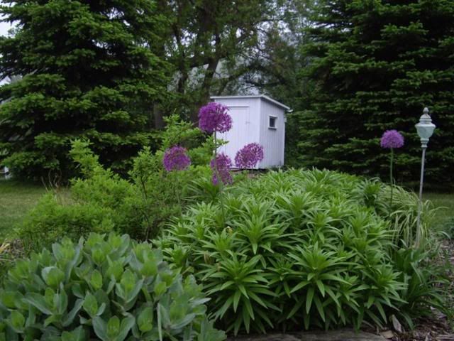 The alliums are always a favorite of mine. You can see the Secret Garden in relation to the rest of the area that I garden. Its behind the row of spruces.