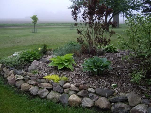 | Michelle....add me to the list of those who envy your wide open vistas. Just love it and can't imagine what it must be like to wake up everyday and be able to live with all that space. The next thing I notice is all of your lovely Rocks!! lol Lucky girl to have so many. I suspect you didn't have to go far to get them. [g] I also notice you have some very pretty Iris. Love the purple at the edge of your bed in photo #5. They sure look happy there. What type of evergreen tree are those. Such gorgeous mature specimens. I am also a fan of variegated and colored foliage. I think it really adds a lot of interest and light. What a huge Bleeding heart too. Lot of work edging that bed I imagine. How long did it take you? And how do you keep the weeds out from between the bricks? Loved the tour! :-) It's not often that I have seen a farm that had such a garden. I am amazed that with all the farm work you have, that you are willing to put in more work to garden. You must really love your garden and it shows. :-) pm2 |