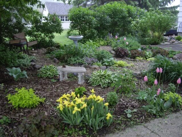| Definitely neater than my garden! Everything is later here this year too - it looks like we're only a few days ahead of you. The picture I like best is the one of the Welcome garden with the stone, purple alliums and the silvery-blue grass - that's a wonderful harmony of colors! The second favorite is the fern and the Burnished Bronze - can you tell that I like a lot of almost monochrome plays on color?! Thanks for the tour Michelle. |