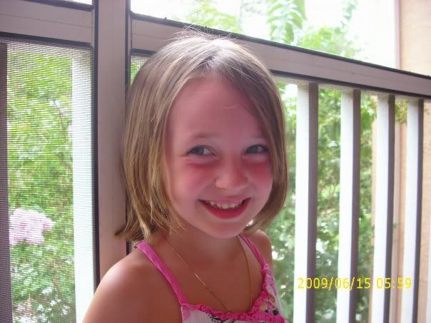 I remember DD doing this as well. Here you see her with excessively short bangs after I evened them out: I'm off to the garden where the sun is beating down already, but work must get done before my friend arrives tomorrow for a 3 day visit. 'bug |