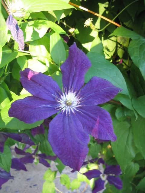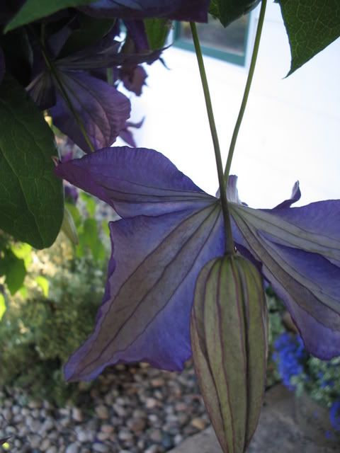 | So now Deanne is growing diamonds in her garden ;o) Great shot! "The divine 'Vyvyan Pennell' (I'm totally into gaudy)" Me too! Although, some of the smaller ones bug is showing are so elegant. Mary, I eagerly await the tile pictures. V, I love the Phlomis and Lurie Garden. 'bug, here's several pictures of the mystery clematis from a couple of years ago. The flowers do a fair amount of dangling.