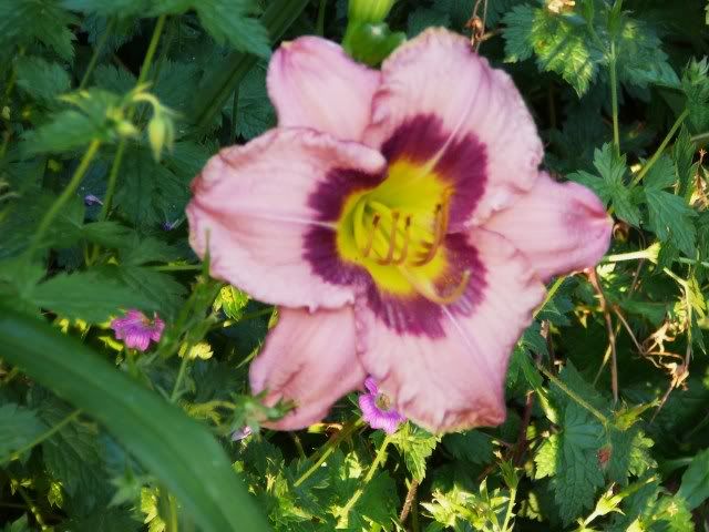 | It was hot here, yesterday, too, Deanne. And when it's hot here and remains hot all afternoon it's pretty unusual, we can generally rely on a sea turn by 1 or 2 PM. We had a nice cook-out to celebrate Independence Day. A fancy sausage cut into chucks and grilled on skewers along with an assortment of vegetables, coHn on the cob, tabouli, and potato salad. It was lovely. We dined under the canopy on the deck and then the sick one toddled off the cool security of the Rat's Nest for a recuperative nap. He's considerably cheerier this morning (to my relief). We skipped the fireworks last night, but made an effort to round up the pride early. Rex was less than thrilled with the distant sounds of celebration, but managed to calm himself down when he saw no one else was particularly worried. ;) I have to say, though, that the relentless circling of an afterdark airplane was a huge irritation. I emerged from the boudoir and asked, "what is this? a reenactment of Dresden?". After an entire day of "loud pipes that save lives" and relentless traffic on the road (and in the air) I was more than ready for a lull. But no! I mean to tell Cindy how exciting her news is. Although, for the life of me, I can't imagine why anyone would want a puppy... . I hate dogs. Etoile Violette has been very reliable for me, in spite of hideous neglect. So has another one in a similar color whose name I've forgotten (along with the fertilizer!). Polish Spirit seems to have departed to the spirit world, but Daniel Deronda (always get the name wrong) wilted last year and wasn't pruned this year... but large blue flowers were still bestowed as a token of trust that next year will be better. :) I love the ruffley pink daylilies. So pretty. I didn't feel like cutting out the new cushions. But I did locate some suitable insert for the cording that will outline them. Perhaps I'll set a goal to get the cutting done some afternoon this week. It's too hot to pull weeds or undertake any of the things that need doing around here. Just don't feel like doing much of anything, frankly, probably because there is so much to do and it seems that I'm the only one who makes an effort to do any of it. (which isn't true, but it feels that way right now). OK, hope all birthday celebrations were fun. And meant to tell Candy that her Hostas look terrific; mine have achieved plenty of "bulk" and impressive dimensions, but slack with Sluggo they are now "swiss cheesed" and hardly the regal specimen they could be! Thanks for the reminder... ;) |