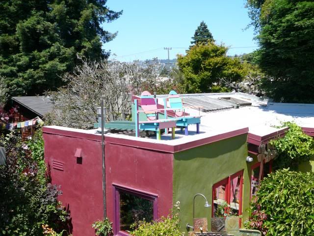 | Hola Idylls, I am WALATing tonight in very pleasant conditions indeed, and making some plans to avoid frittering away the entire weekend …I’m going to head out and water down the Hell Strip shortly so that it will be dig-able tomorrow. I had planned to visit Freeland Tanners garden tomorrow but the tour is full…disappointing ! Had I known it was limited I would have called sooner. Oh well. Wow Marian, that is a huge container ! You must be really happy with how it turned out .. the back side looks like a whole different arrangement. ‘bug and Woody, I wonder are these temps usual at all for you ? I’m interested in what the Idylls might expect for the Garden Walk Buffalo next year..I looked at some average temp info and it looked like 80 ish was the norm. Cyn, not to steal Cindys thunder, but that is Keeyla Meadows studio roof, taken from the 2nd floor balcony of her house. How gracious she was to let us roam around at will , even snapping pics of her bathroom ! I am going to her GC open days in a couple weeks and hope to have more photos to share. All for now, see y’all tomorrow. Kathy in Napa |
