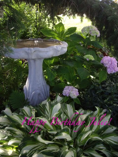 | Thank you all for the amazing birthday cards. Each one is so interesting and unique, just like each of you! It's turning out to be a busy weekend after a quiet week. Bella was away on vacation but returned Thursday and things have been in full swing since. She's waiting for me to play a game as I hastily type this but I didn't want any more time to go by before I thanked you all! Oh, and Marie thank you for taking the time to send me such a special birthday email. That was especially appreciated! Hope you all had a wonderful day in your gardens today! Laura |