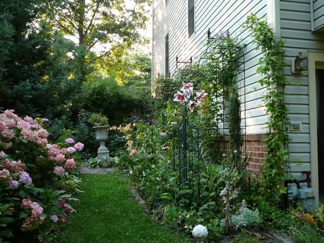 | Michelle – ouch – the shingles? Poor u – gee, I hope it wasn’t something "we said" here when talking about Sue’s problem? Yikes – poor you – Im glad you got it diagnosed properly though – boy, you’ve had more than your fair share of illness/med problems too this year – I sure hope you watch all that stress at the ofc – I imagine that doesn’t help the immune system any. Pls do feel better soon. And such a lovely compliment re my tatty yard – I’d love to be reminded of English gardens. . . . .even if it’s a really wild one, LOL... Mary – loved the TMI – I had visions of you gardening in your green undies! . . . count me in as a Harry Potter fan... I don’t have any little ones at home, but I still love the books & have seen the movies – in fact, my DD (all grown up!) & I started a tradition of going to see the movies together as a mom/daughter outing! We’re hoping to do this weekend, LOL... Hope your book club/pool party turned out okay – we had some deluges of rain here in DC today – unfortunately not so much in my home neighborhood & I was draggin hoses around last nite – Im afraid some things are already past "gone"... I should have watered a day ago but have been too durned tired when I get home at nite. . . . Martie – your "park" is doing wonderfully & things are really filling in, arent they? I love the roses in the front – so welcoming! Isnt it fun to have Idyll plants to show off?! Enjoy vacation. Ei – what a wonderful treat – takes me down "memory lane" to see current shots of your fabulous garden – I loved that urn in your yard – such drama and it looks fabulous again – I saw one in the spring that reminded me of yours, but opted not to buy because I didnt think I could do it justice as you have done. I can’t tell you how much inspiration I got from your gardens. . . . from the daylilies (ship to me in the Fall – that’s probably safer, unless you’re coming to IU4????) – to the callirhoe, Chamaecyparis nootkatensis Glauca Pendula (you and I chatted about) – so many things – I’ve looked over my photos from your place, time and time again for inspiration. I just love how you combined so many wonderful things together. Brenda – like you, Im watching the skies relentlessly, hoping for rain – but while it rained about ¾ inches in DC proper, my yard 30 miles away got less than ¼ inche – boo hiss. . . . LOL... still no green pantie adverts. . . . Cindy |