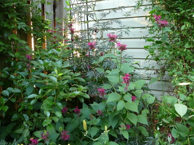 | I forgot to mention & you reminded me, Michelle -- that in mentioning trees/plants I've been so happy w/ this year, the Sambucus Black Lace - where it kind of languished last year at about 18 inches --- this year it really took off -- this is a photo about a month ago of it (for Deanne) & it's now at the top of the arch & even wider... not the best shot - but really a great plant, IMO: