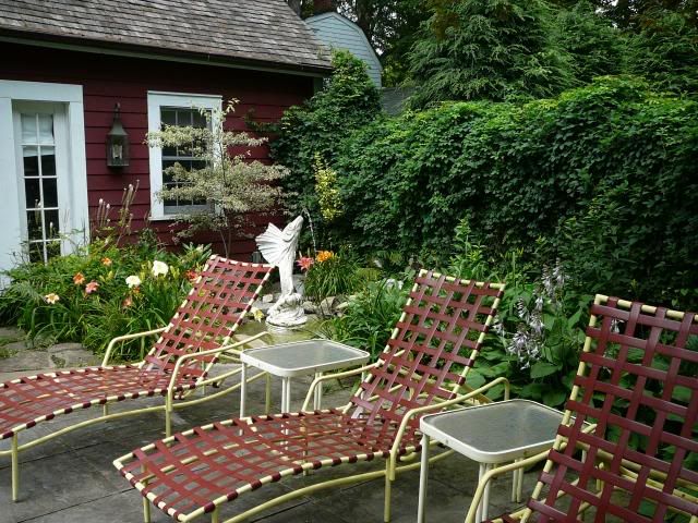 | Here's the 3rd garden through my lens....(Cynthia, I did not like the mongrels out front, therefore did not photograph them): Apparently I was hungry as I took a picture of any table and it's view no matter the garden: What I liked about this garden is that there was no bones made about this being HIS garden.....the woman of the garden made that clear. Knowing this brought the garden into a different perspective for me....I considered that Nick might like it (where he has trouble with the chaos of mine at times):