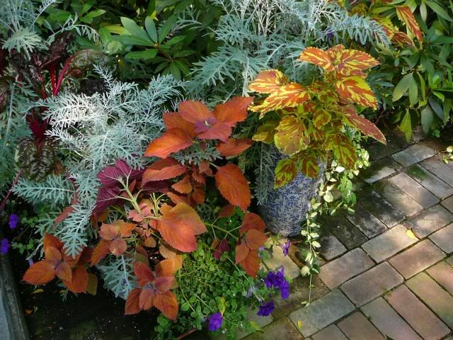 | A very quick good morning to all, Great day yesterday again. The garden visit was a success even though we almost had to cancel because of rain but the precipitation stopped in time and a good time was had by all. Kathy, I’m not sure of the ID on that plectranthus but will try to find it. I will definitely send you cuttings. I’ve had that plant for a several years and it’s an ‘easy keeper’. ~~~ Just love your pics from that conservatory. Some of those begonias are wonderful. Sue, WOW! That patio and your banana continue to amaze. What a gorgeous photo. It looks fabulous. More pics please? Thanks to all for all the advice for replacing the rudbeckia. I agree with Sue that it is just the hardest working plant in the gardens and really earns its space. Kathy, I’d thought of doing the dahlia thing but I have a real problem with slugs in that garden and they LOVE dahlias. I might try it though as I know there are varieties that have purple leaves that would be good there too. I’m still pondering. I might just remove half of the clumps of rudbeckias and see if less of that color will do the trick. Martie, Love your patio! Beautiful spot for recuperating. OK I’ve got to get our of here and get to class so I’m going to sign off for now. Have a great day everyone. Deanne |