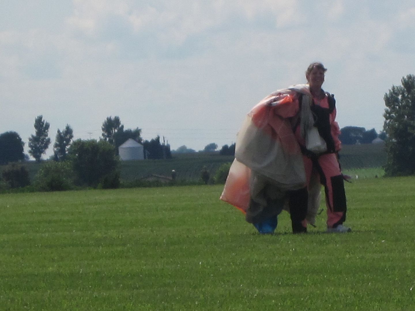| In case you noticed a shadowy form lurking around your garden, fear not..it was only me. Everything here is hidden in weeds, and it's too hot to do anything about it. The summer seems to be getting away from me, and I'm already in "maybe next year mode"! So, I thought I'd come and stroll through some of the prettiest gardens I know of :) Saucy, the GG is looking wonderful! It looks like the perfect shady place to hide on a day like today. It's been busy in a slow, farmer-type way around here. Jude is growing like a weed, rolling over now and has found his voice. After MUCH deliberation and back-and-forth in arguments with myself, I've started learning to skydive. We went last weekend, and I did 4 jumps. At this point, my instructor has ahold of my harness to help me learn body position in free-fall. He holds on until I deploy my canopy and am pulled from his hands. I steer and land myself, with him on a one-way radio in case I need instruction. No broken bones or concussions, but I did have line-twists once. Fortunately, the emergency procedures they taught popped right into my head and I dealt with the situation and landed without too much hullaballoo, lol! The last jump was the best free-fall/worst landing. I couldn't find the landing area, and was forced to land in a cornfield. The wind had switched, and they were dropping us on the other side of the river. MOST unfortunate, as I had been using the river for orientation. On my other jumps, the river was on my left side. Well, if you're on the OTHER side of the river...let's just say I've found new landmarks to use for orientation. I landed in the cornfield without any major problems, gathered my parachute and my wits and walked out. Someone came along to pick me up, and take me back to the dropzone. The biggest injury was to my pride. Jim was recounting the story from his point of view, back at the dropzone. My instructor radioed the DZ manager and said, "We've got an older student landing off in a field." HUH!? ME!? Older??? HMPH! I'm having a grand time with it, and can't wait to go back. Duty calls...Jim is trucking grain today (somebody has to pay for these adventures, lol!) and I'm in charge of cooking dinner tonight. No grillmaster :/ |