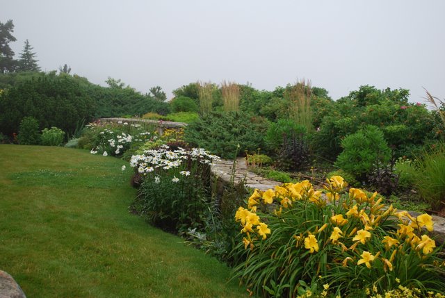 | I am so envious....I would so love to visit Chelone at her Compound.I think it is beautiful, and it looks well enough tended for me. :-) It looks lots better than my yard and beds. The neighbor's place is lovely also...and the view of the seaside. |