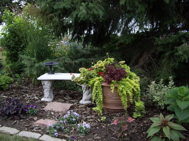 This is my latest urn that I purchased. The plants are all clearance sale or starts that I had left over.