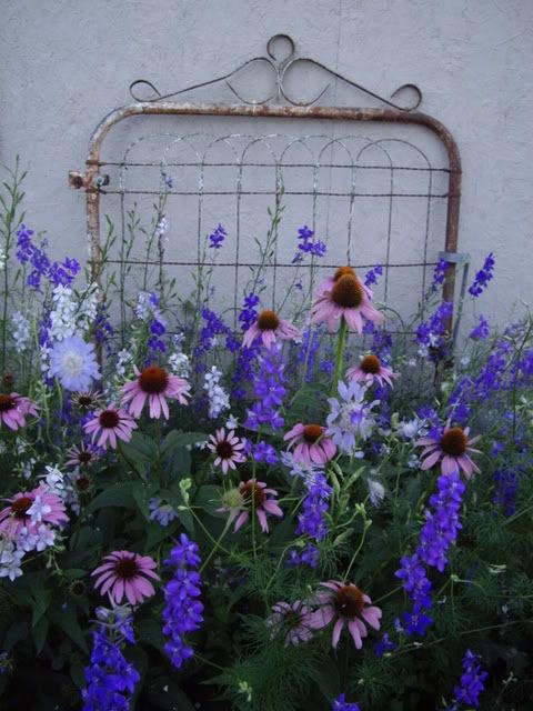 | Ooo La La! I love all your pictures! The larkspur is beautiful with the coneflowers and I agree with Marian, I want your garden gate. I love your new trellis! I can also see the from the potager! I would like to see more pictures, too. Your patio plantings are nice, too. I always like seeing what others are doing...sparks the imagination! Saucy |