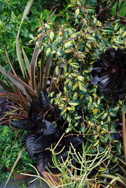 | Kathy I love your silvery/white combination in that last photo of your series! And then Denise joins in with more! Denise, raising the colourful plants up several feet is brilliant. I love the textures too - the tree bark, the foliage - just beautiful. Looks cool too! Deanne, all my coleus look filagreed these days, not lush and gorgeous like yours. See? Beware, reality shot! |