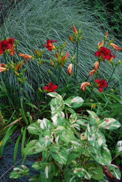 | I was so focused on not losing the post that I didn't add my comments re the gorgeous combinations. The hosta and corydalis are an instant classic, as are clems through the hydrangea. Michelle, that container with the papyrus is a stunner. Kathy, that Lobelia laxiflora seems much happier with you, and nice reminder to bring home more golden oregano. Funny how a beloved plant disappears and is forgotten for a while. Love the Tower Hill high-contrast planting. Blondiesc, gorgeous stuff! Thanks for posting. |