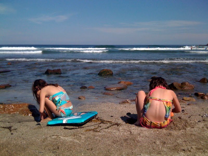 | I think you should start documenting these trips (with food to boot) and sell them to us garden types. Kathy's Garden Travel :) Well, Deanne's been on a little jaunt, too. What fun to meet Stella and go garden hopping with Cindy. Nice that Doug got to see his air museum, too. He is such a good sport about our garden adventures. Julie, I hope your plumber arrived. If I don't make sure the garbage disposal gets cleared out before I run the dishwasher, the same thing happens. It's not pleasant! GB, we're going to check out the hummer link this morning. Sarah and Jake were amazed by the hummingbird's in TN, epecially how many there were compared to our one lonely hummingbird :) I keep hoping our little bachelor bird will mate someday and bring his family by for the floral buffet. The woodpeckers and crows are being loud here this morning and I hear the children stirring in the loft. Sarah's been fussing about not being able to sleep in late, and I find it quite humorous. Here's the girls at the beach yesterday - we took a little trip down to York Beach and visited the amusement park as well. Sarah had already written her report of what she did this summer, and this was something she needed to experience so that paper would be truthful, lol! Get your homework out of the way, I guess :)
