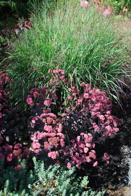 | Joy indeed! Grasses with Sedum and a hose... That's what this time of year brings! Thanks Kathy! Chelone, I'm with you on computer technology. I'm the last one to be helped too because everyone else's work is far more important than mine, or so they believe. Grrrr. It is already cooler here and I accomplished some yucky stuff in the cleanup department outdoors. I'm afraid I need many more days of work there though to complete the weeding in that area. I wish I could afford slaves. I have been attacked by stinging nettles. Tonight DGS returns on a bus from his first overnight camp experience and has dinner with Ivy, DD & his Dad. A nice chance to chat about his week! Then back to his Mom's. 'bug