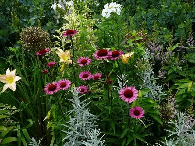 | I'll chime in too -- Michelle, that is certainly a wow container arrangement - beautiful!! So how would you, Michelle, fill in a container that has a boxwood ball topiary, and ivy that's growing draped over it? I've got them on either side of my front door, and guess it's time to rip out the few annuals I had plunked in there -- but I always have trouble thinking of things that wont harm the growing things -- maybe I need to go hunt for some grasses like you did - I've got the hydrangea heads... hmm, i'll have to see what I can hunt up from the beds. Gardenbug- I hope your dance goes pleasantly and people treat you civilly and "normally" ! Deanne, those are all IU5 conservancy shots -- I really did like that combo of echinacea (vintage wine do we think?) and other things... I would love to somehow duplicate 3 or 4 of those things together...Of course, Im very fond of classic ornaments too and loved that garden that had all the classic touches of urns and balls, etc. Sounds like a few of us hope to get out to the garden -- me too - dont know what all I'll really accomplish - there's really lots to do; it should be cool but sunny at least. Julie jobs -- I do relate, Julie -- I usually make mental notes too of "fingerprints on doors" spiderweb in the upper hall corner, etc., -- things that if I did that old Fall/Spring cleaning from top to bottom as PM talks about, would take care of them all... but like you, Im lucky if I get just one of them done a month, LOL... Sue, - good luck on finding that leak -- they can be from such weird spots -- like a window caulk missing from outside, punctures in the vinyl siding -- eeek, all kinds of things - I think water leaks are one of the hardest house maintenance things to identify and cure..... On that note, Im hoping for a dry dry weekend for a change, LOL... Thinking of Saucy off on her venture to the Bridge of Flowers -- what a quaint name - hope she brings pictures. -Cindy |