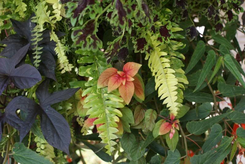 | Good morning all, Well I woke up at 4 and couldn't get back to sleep so I finally gave up on it and got up at 4:45. I'm not going to be doing any partying tonight!LOL I've been feeling a bit 'off' lately not sick but not 100% and I think its just the change of seasons and the shortening daylight. I'm such a sunlight driven person you'd think I'd move south where the winter nights aren't so long. LOL Kathy, you are brilliant.... of course I have found her We are dancing I'd forgotten that the lyrics go back and forth between Cinderella and her Prince. I'm mulling on it and bits and pieces keep floating back. ~ Break~ Speaking of Kale, you should see the gigantinormous Kale in my mailbox garden. It is currently about 4' x 4'. Not kidding here. This is the one that survived the winter last year and I couldn't bear to pull it out. Well it's a star but will have to go in the spring as I can't use an ornamental Kale that wouldnt' be out of place in the Macy's Thanksgiving Parade. ~~ Surely hope you get some rain there. I can't imagine going that long a time with no rainfall. Cindy, is that last pic from the last garden on the IU5 Garden Conservancy day? I seem to remember that combination. ~~ I hear you about earphones, I go through that at the gym with folks singing along off key to something I can't hear. Like fingernails on a blackboard. ~~ I agree with you re mealybugs and cockroaches. Have you thought of taking some leaf cuttings of your violets in case they don't make it? I used to propagate mine that way. Takes a while but you wouldn't lose the plants altogether. Brenda, love that combination with the Fuchsia 'Autumnal', Begonia 'Bonfire', Coleus 'Inky Fingers' and sweet potato vine. That also looks like that variegated boston fern I coveted at Monique's this summer. Did you put that together or was that from your vacation pics? So I guess if we are going to to IdyllCamp in Maine next summer I'm going to have to start practicing my guitar now for the singing around the campfire. Speaking of Chelone, would love to see a post from her soon. Hello to all, hope all the birthday ladies had great days for their celebrations... Have a great day all |