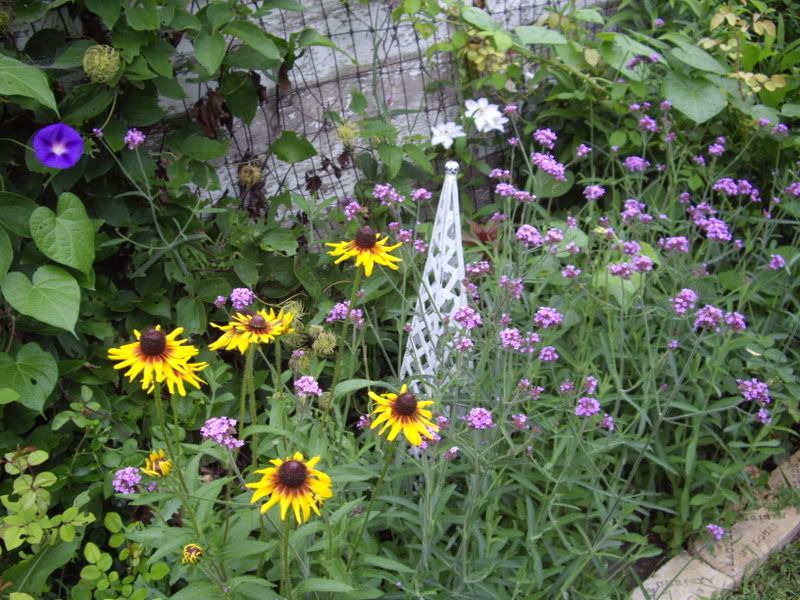 | Lunch with the Idylls..or lunch with Chelone ?? I’ve cleaned the kitchen and almost cleaned 1 bathroom. Am moving water around outside and resisting the temptation to linger. Must clean this house ! My DH passed away in fall, but oddly I don’t associate the season with that event at all, I fact if I did not know the date he died I would have trouble remembering exactly what time of year it was. I think my brain disassociated the garden and the natural world with that time of my life. Marian , I always referred to my children as the Screaming Meemies, and still do to this day even though they are both adults. lol. I have a co-worker who always asks me when am I going to stop calling them that? I guess I now have a Screaming GrandMeemie ! Conjunction is The Meemies or simply "The Meems". Back for my 2pm beer (probably a 3 or 4 pm beer today) Ted ‘helping’ me Idyll.