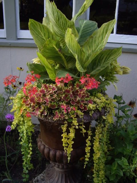 | Michelle, how do you carry your big canna over winter? I have been leaving mine in it's container, and it stays green all winter in the utiliyroom. But now the container that it is in is so large, I don't know if I can fit it into that room. :-( Mine is the same variety as yours. I bought it labeled 'Bengal Tiger', but I think you all call them Pretoria? Phill, great to see another from the Pacific NW. My brither lives in Albany, OR. I am a native Idahoan. Marian |