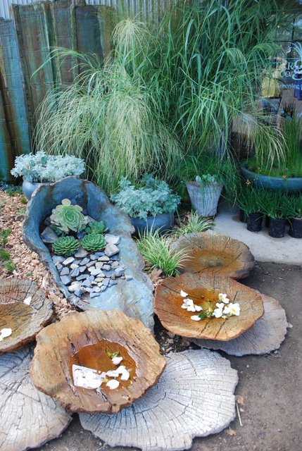 | I have spent WAY too much time on Farmtown tonight. However , I now have a river , which will soon have flower borders studded with pine trees. I did take a break to water the ‘real’ garden since the first day of fall here sported 90 degree temps. More of the same tomorrow. ‘bug that coffee cup is fabu ! I love ‘botanical ‘ serving/dinnerware,-have always pined away for Portmerion. Ok Deanne I am reading your fall reports with interest – timing the 2010 visit east .. I await all reports of fall foliage. Wonder what Les and Moniques is looking like about now, with all those great grasses. There you are Cindy, it sounds like the awfice is wrapping it’s slimy tentacles around you. Take a breath and envision that little seacoast retirement cottage ! Watering is always in high gear here in Sept- so many months without rain and everything is bone dry. Thanks for the scoop on the gardening DVD, I must have missed Denises blurb on that one- it’ll go in my ever expanding queue ..I have watched very few movies this summer (baseball and daylight savings time conspire) and I have a serious backlog. I have 3 movies sitting here right now that I’ve had for at least a month. Next year I need to be more organized and change my plan for the summer . Hi Julie ! LOL, the idea that I would actually ever be up late enough to watch Letterman or Leno. The Late Show is the name of the garden show in Sonoma County I went to last Saturday. I’m jealous that you got to see Deannes studio- I was so busy gawking at the gardens I completely forgot to ask her to see it . Ahh Brenda , the smell of stale beer in the morning, lol. I would love to see Taliesin- hope the rain lets up and you get to visit. I have a ‘permanent packing list ‘ that I pull out whenever I go anywhere, and it includes the ‘must take’ items (camera, extra batteries, phone charger, wine opener etc. . I also start a staging area on the dining room table several days before I leave and anything I think of that needs to go with me gets put on the table right away. Next week I will start staging for my driving trip to the coast Oct 7. I hate to forget stuff when I travel. It’s one of the few things I’m very organized about. A few more shots from Sonoma: Thought of Cynthia :-( I miss her ! Aren't these cool ?
