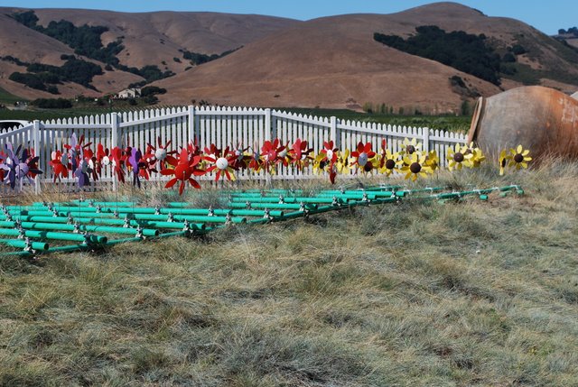 Our golden brown hills of summer, and a field of whirleygigs