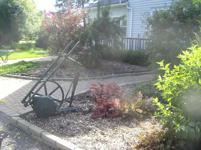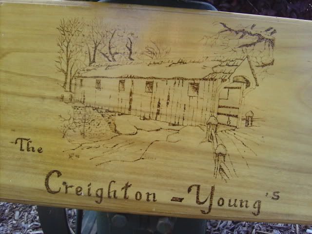 I have 5 loads of nice garden mix, 5 3.8 cubic yard bags of peat moss, and a big load of aged FREE cow manure coming at 9:30am tomorrow! The manure is from a guy on the next concession we are getting ½ a cow for the freezer from. Grass-fed, hormone free meat, cut and wrapped to spec, for $2.50lb CAD, PLUS as much free manure as I want! Can’t go wrong with that! He also sells buffalo meat, which is a lot pricier though. Anyone use buffalo manure on their gardens before? LOL, life in the country… This is rather freaky. My late step-MIL did this woodburning plaque for us in 1992. She died in 1998. We really had nowhere to put it up at our last two houses, but I put it on one of my antique pumps at the front of the house here the day after we moved in. Then I took a step back, looked up and did a major double take. IT IS THE BARN, to a tee! From the shape of the building, the small windows, the trees up close to the right (can’t see in the pic, but they are there) and the trees behind in the distance, even the direction of the driveway, it is like a reproduction of our barn here. 14 years before we moved in! The plaque:
