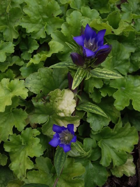 Several nice blues in the garden, tradescantia 'Sweet Kate' and gentian scabra.
