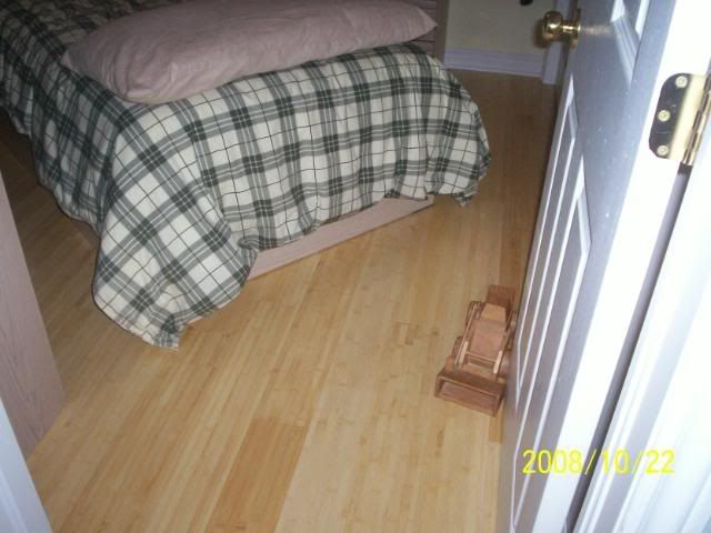 The new bamboo floor in TCS's room.