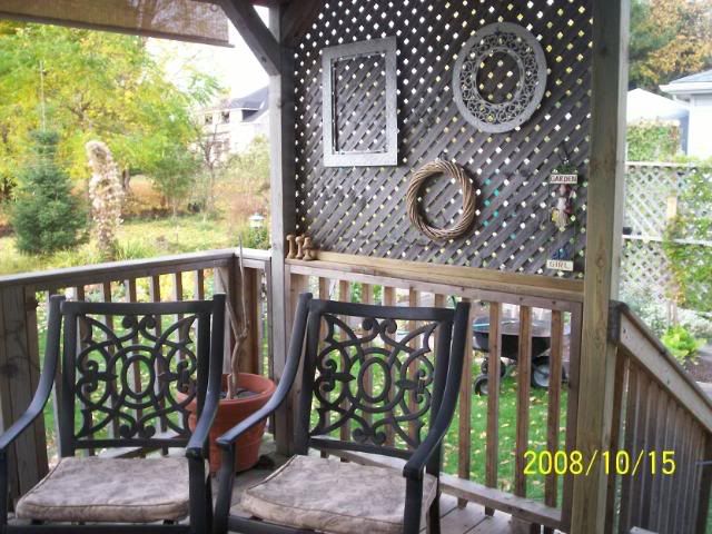 | Great job on the floor. I like your wine deck, what a great idea! I like the things hanging on the lattice it adds nice interest. I need to see more pictures of your garden shed. Michelle |