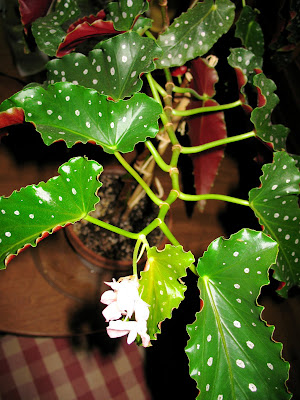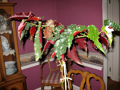 | Good morning, it's Friday again! Gray morning, expecting rain later today. It has been so very comfortable so far this fall though. Nice temperatures, some sweater days, but at night our windows are still open and haven't put away the air conditioners yet. I was watching the weather last night and the weatherman was pointing to Edmonton on the map with a temperature of 12!! LOL Oh my, thinking of you, Marie. Snow and cold temps so early. I would imagine DD & Company are used to that by now. I would bet they even enjoy the snow and wintery weather. Chelone...The SAD...Standard American Diet, is a sad state of affairs. Everything seems to work against you when you are trying to maintain your weight. We were taught the 'food pyramid' in school, and it turns out that is not a healthy way of eating. Since then, the information about what is good for you and what is not, is always being discredited. You never know what to believe. I remember when overweight first began to be a problem, everyone was encouraged to eat a 'low fat' diet. Which it turns out made things worse. You really need healthy fats. Your brain and your neurological system especially. Add to that, the fact that there is fast food on every corner, that it now takes two incomes in most families to survive and everyone is way too busy. Add in manufacturers of prepared foods who remain more interested in selling their product then in whether it is good for you. Trans fats would still be common if not for regulations. Add to that, the proliferation of technologies that keep people immobile and it all adds up to having to swim up stream to do what's best for your body. We all need to be salmons and not lemmings, and I include myself. Stepping down from my soap box now. [g] Kathy...That first photo really appeals to me. I am not usually that drawn to sculpture in a garden, but that particular one fits that scene so perfectly. I don't think I would enjoy the scene as much without it. Very cute greenhouse. Isn't it unusual to find Dahlias in a Botanical Garden? Mendocino. Wow. I was thinking of you this morning as they were reporting news of the playoffs. You must be in heaven, baseball, music, the ocean, gardens and no work. I wonder are you happy to get a break from taking care of the kitties or do you miss them? Hi Norma....you sound better. :-) LOL at the quacking message. Mary, you sound like you are having such a blast with those chickens. I will be interested to see how they do over the winter. What zone are you, 5? Will you be adding a lamp for heat or anything like that? Deanne, you and Doug are early risers, too? DH and I are up before dawn with rare exceptions. I remember the days when I used to sleep half the day on the weekends as a teenager. I also slept so soundly. You would just about have to put a bomb under my bed to wake me. Now, it takes a pin dropping. ..... I have to hand it to you, I don't think I could face doing all that plant removal. Or being consistent about caring for all those plants all winter. I wonder, what would you think of starting to do pots that you could leave out all year? At least for some of them. You have a lot of concrete pots that could stay out all winter. If you chose perennials that were two zones colder than yours, they would make it. .....I thought you kept your coleus cuttings in water all winter. Do you pot them all up in individual pots? .....I have a question for you. I still have the Begonia standard that we started last year when Martie started a thread on them. It has continued to grow in a single branching pattern and I've been training a second branch to wrap around the first one. It is almost to the top. When it gets to the top, I want to cut back the other side branches to get more branching and fullness. I'm just not wanting to make a mistake. I was hoping you could tell me how to prune it. It's an angel wing begonia and here are photos..... This would be one of the side branches I would want to cut back. How far back would you cut it and would you only prune it the one time or keep pruning successive branches? |