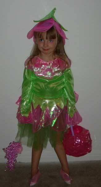 | Kenzie showed me her costume and candy on the webcam. I decided she looks just like a garden fairy.