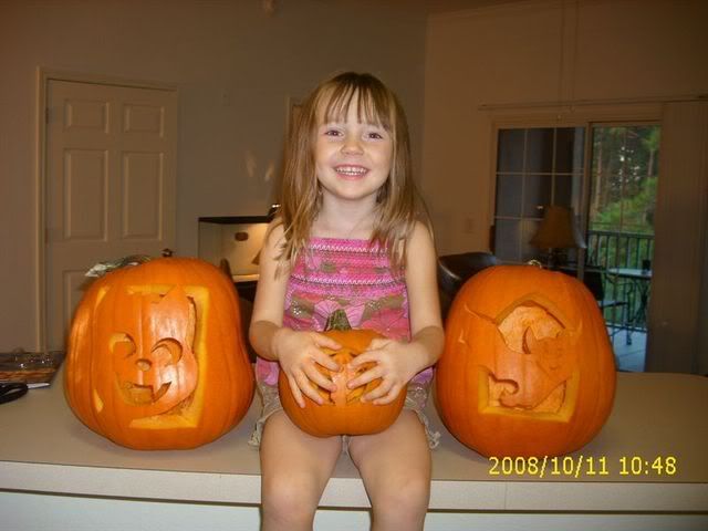 | What a fun thread Denise! Such adorable Idyll kids/grandkids! Kenzie will be a fairy if she too doesn't wear out the costume. The last time I talked to her she told me her magic wand was "lost" LOL I think mommy had something to do with that. I'll have to look for a few oldies this weekend. Here's the the pumpkin carving results. |