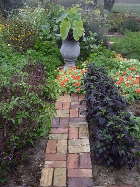 | Of course I was trying to get this post organized in a hurry. Sorry about the left/right thing ;o) Marian, a potager is a combination of vegetables/flowers/herbs. I like to call it that because mentally it makes it more fun for me. When I had just a veggie garden with a rectangular shape and rows, it was my most unfavorite garden. Mums are easy here and the orange one in the container was actually a cutting that I started this spring when I hacked back some tall ones. I was suprised that they did so well. Saucy, I'm honored that I've inspired you. Denise, the floaty daisy is boltonia. Thanks all for the lovely comments. Michelle |