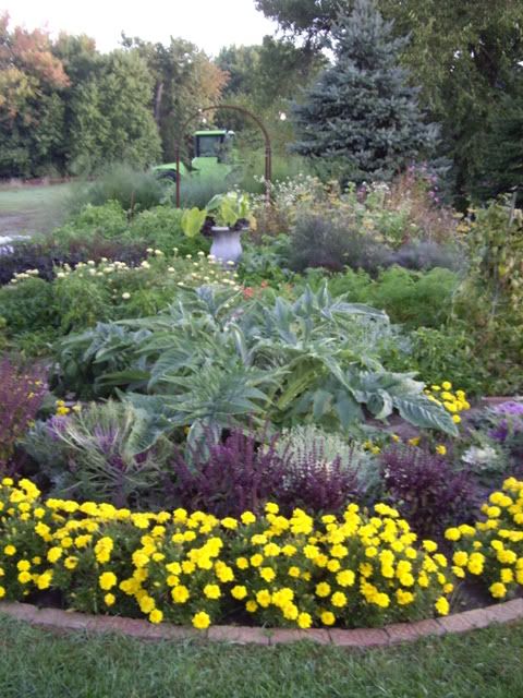 | From Wikipedia: "A potager garden is a French method of creating ornamental vegetable or kitchen gardens. Often flowers (edible and non-edible) and herbs are planted with the vegetables to enhance the beauty. The goal is to make the function of providing food aesthetically pleasing. Plants are chosen as much for their functionality as for their color and form. Many are trained to grow upward. A well-designed potager can provide food, cut flowers and herbs for the home with very little maintenance. Potagers can disguise their function of providing for a home in a wide array of forms--from the carefree style of the cottage garden to the formality of a knot garden."