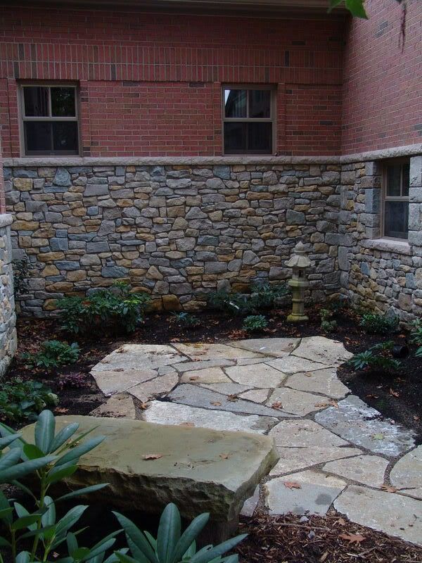 | Jan, there is a whole woodland garden that I am working on, below the house and bordering 4 acres of relatively old-growth, pristine woods. Most of the pics of that are on the other thread below which includes lots of garden pics from lots of people. I am really excited most about having a woodland garden to work on, since my previous garden was mostly sunny. Most of the 4 acres of woods is going to remain as is, with the garden being mostly a path. I am not yet sure what the meditation garden is going to be -- for now, a place to put the stone bench I brought from my old garden (there's another transplant...), and a japanese lantern my partner Jim had. Jim is in favor of 'spare' planting in this area, being a fan of more modern design and japanese gardens in general. But I am not sure, being a consummate plant collector, that I can DO "spare"!! For me, this is the most protected corner of the entire garden. So I have so far planted an Ackerman camellia, sweet box, Prunus laucerus -- plants that really shouldn't grow in zone 5b but I am trying here anyway. I know we want to have lots of evergreen textures since this is an area readily visualized from inside the house, at all seasons. We will have to see what balance is struck between the 'spare modernist' and the 'geeky plant collector'. Oh, to be gardening alone again! Not really, of course, but the process is different when you have TWO people who have strong feelings about what the garden should be rather than one. Fortunately, Jim has given me 'veto power' over garden decisions since I am the primary gardener with the knowledge and experience. Actually, I have really enjoyed the give and take of gardening with another person. It means making compromises, but I think the end result is better than that I would get by myself. |