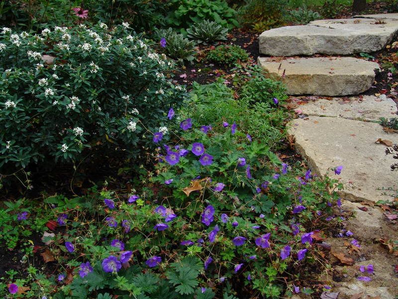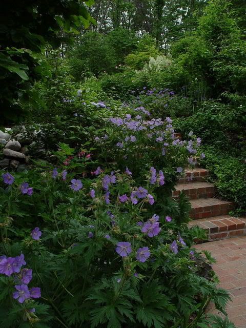 | Hi Carl and Monique and all my other cyber-friends. Yes, Carl, that is indeed Anabelle. I liked her in my old garden too but she got very floppy with huge heads in the rich clay soil. The subsoil here is sandy, and I suspect she may get less floppy growing in a sand base. We'll see if she makes the 'cut'.... My old garden did indeed have some slopes and level changes -- not as much as this one but they were still there. Carl is 'right' to ask about that, since for me slopes and elevation changes add so much to a garden and give a lot to work with that just isn't there on a flat site. My favorite elevation change in my old garden was a set of steps right in the center of the garden (aw heck, it's winter, why not show a picture from the old place too, since Carl asked, right?)