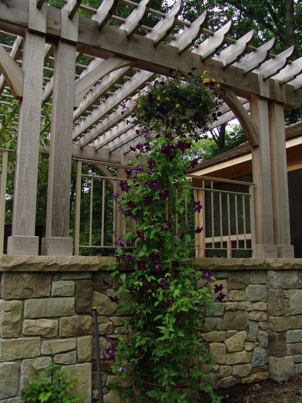 | Hi kato. The pergola is actually in another part of the garden from the gravel garden, some distance apart (more than 100'). But the combination of various blue-purple-lavendars with yellow, orange, and a dash or 2 of red is one that I like, and there is a blue-yellow big mixed border near the pergola, so that will all sort of fit together. The trumpet vine I planted is indeed Mme. Galen, along with the yellow flowered one. I could not limit myself to one kind of plant on the pergola -- I am too much of a collector for that. I have a couple of purple-blue clematis to 'piggyback' on the trumpet vine too, so we'll see how they do. The pergola is very, very sturdy, but I am worried a bit about how much the trumpet vines would take over their surrounding beds below the pergola. Both Mme Galen and the yellow climbed 6-8 feet this past year from a spring planting of fairly small (1 gal) size plants. But I think the combo of the orange and yellow trumpet vines, the orange-red honeysuckle, and the range of purple and blue clematis will be a nice 'melange; of plants. That's the hope anyway -- a harmonious jumble, providing shade as well as color and seasonal change. |