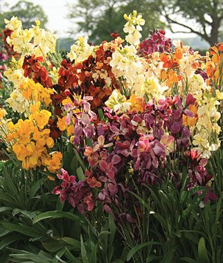 Wallflower, Sunset Mix A breeding breakthrough. This mixture provides a Product Details: lifecycle: Perennial What plants do you plant yours with? I didn't realize my first post ran over into the margin (gee, I wish they'd fix that...only happens if you post a pic) but basically my concern was -- Do they grow upright like the pic shows and are they 'sturdy' enough to grow around daylilies, meaning will the daylily foliage overtake them/cover them up? I ask because the stems of mine look 'snakelike' and not very sturdy, like they're gonna fall over. I don't have massive amounts of daylilies. They will be in a narrow raised bed that borders my walkway so the lilies are staggered here and there. I wanted something to fill in between them. Are the ones you named at the end (honesty, crambe, dame's rocket) different varieties (colors) of it? Oh, and I guess one more question. It says spread of 6-8", but will they multiply in years to come and fill in a larger area? Trying to figure out how close to plants from a 6-pk....?? Thanks, |