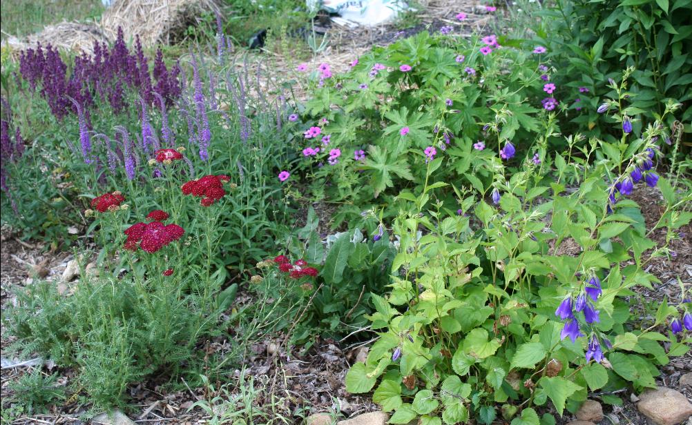 These pictures were taken early in the season two years ago. The beds pictured are now overflowing with mature perennials, many of which were grown from seed via winter sowing. |