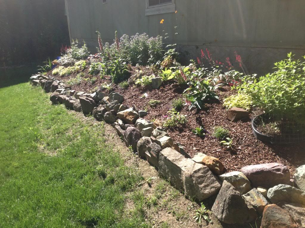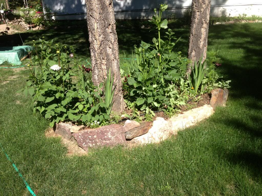| Man, my first post didn't go through. Since lots of you don't have access to rocks I will show a few more pictures of how I use rocks for edging on other gardens. Karin that is some very nice work there! Thanks for the compliments. Hopefully in 6 years my place will look even half as good as yours. I can only imagine what you would be able to do here with the vast array of rock and rock types available. nhbabs I love the way you used those rocks. Next season I want to plant some creepers into my wall just like yours. Bluebird you acquired one very nice rock wall! Diggerdee thanks and wish I could send you some rocks. Here is how I am using rocks for bed edging. Yeahp I go through a lot of whipper snipper cord! This is my perennial bed with some coleus mixed in.
