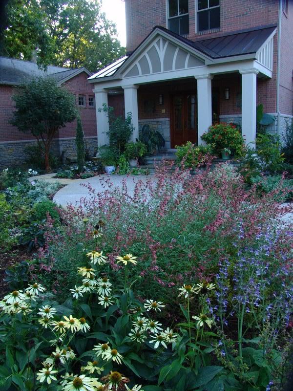 No the front entry. Still very much in progress. A sentinel paperbark maple moved from my old garden (a bigger one stayed behind, though this one is happy and putting on 18" of growth a year...). There is a little meditation enclosed garden off the entry that is partly meant to be enjoyed from inside the house. Last year: