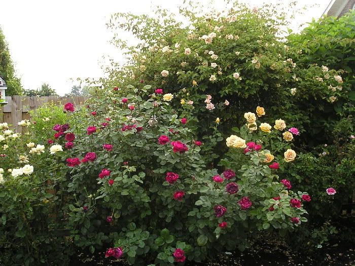 | I'm sorry to say that it is one of the few roses that I actually hate. Here it puts on an incredible amount of growth. All the growth is gigantic thick ugly canes. The blooms were few and far between and I couldn't stand the texture of them(like cabbage) I was happy to see it go. As you can see we all have different gardens and different tastes. |